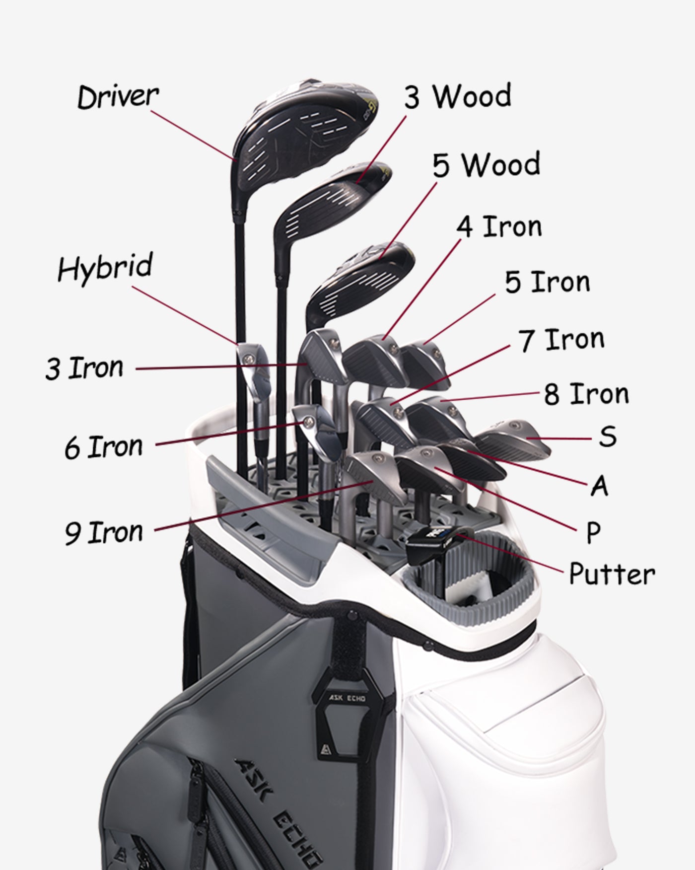 Ask Echo 2025 SLC-130LE Luxury 15 Way Full Length Dividers Golf Quiet Synthetic Leather Cart Bag / GreyWhite