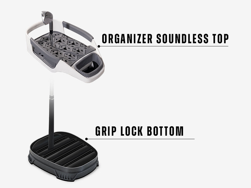 The grip lock bottom provides individual, rubberized grip position so that each club has its own VIP seat and easily locks each club into place preventing noisy rattling and damage to clubs during transport.