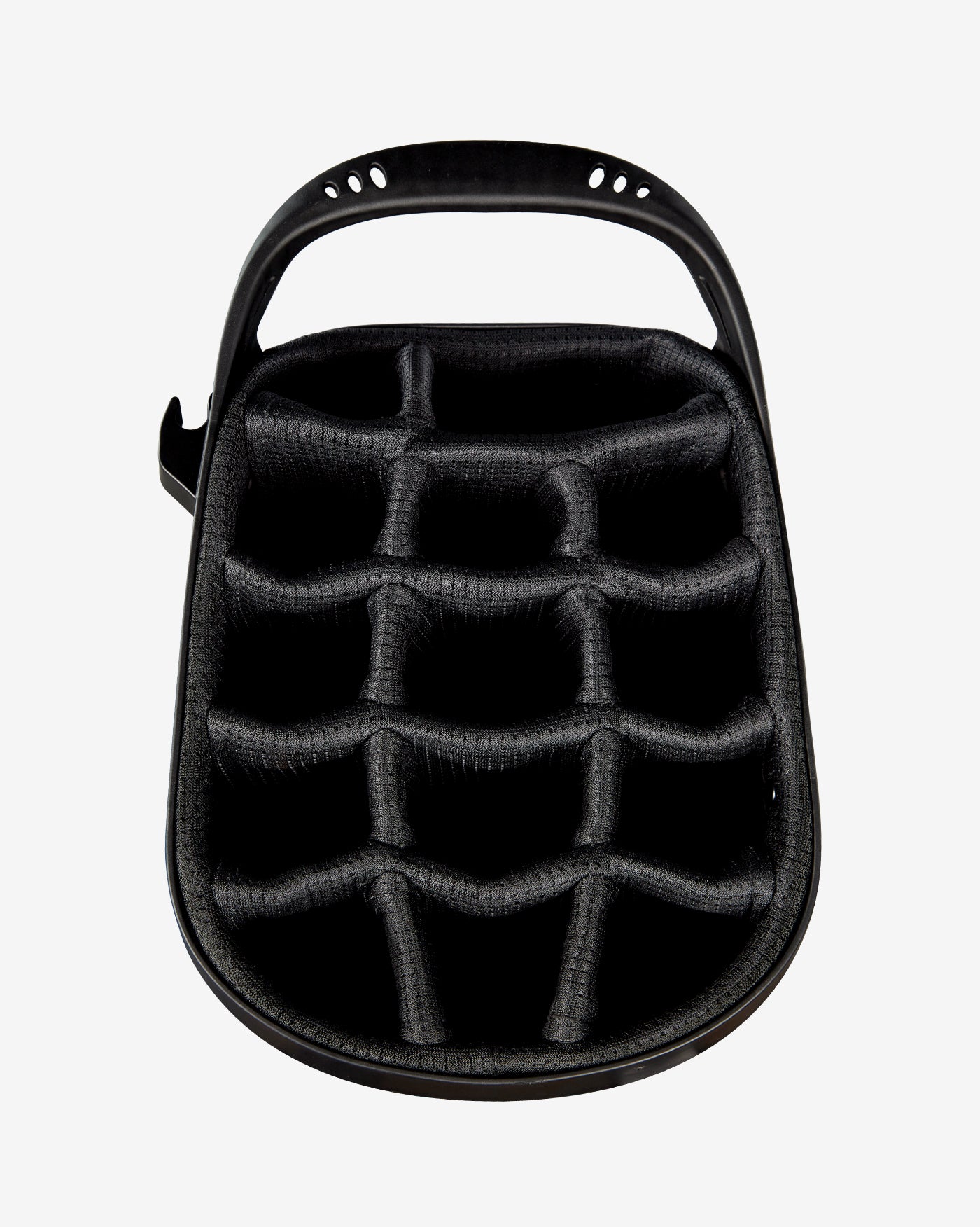 The grip lock bottom provides individual, rubberized grip position so that each club has its own VIP seat and easily locks each club into place preventing noisy rattling and damage to clubs during transport.